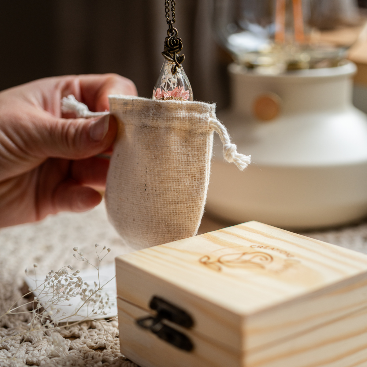 Le pendentif est fait d'un verre soufflé résistant, il suffit de ne pas trop le brusquer sur des surfaces dures ou le mettre sous l'eau et il pourra t'accompagner à travers de longues années. Ne sois pas inquiète.