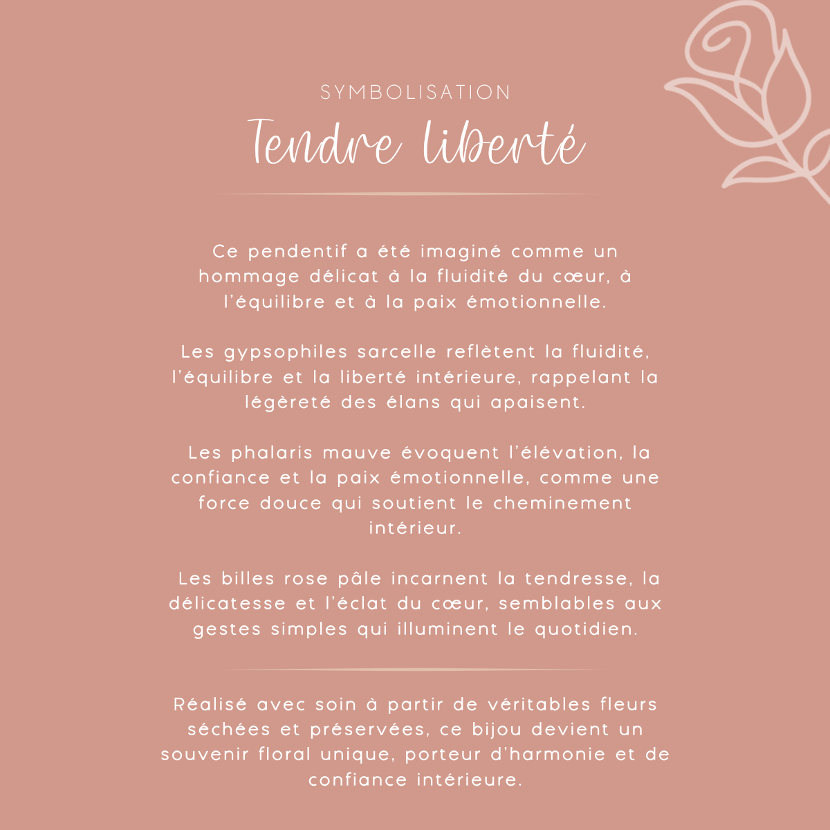 L’agencement floral intérieur, réalisé à la main avec de véritables fleurs séchées et préservées, transforme chaque pendentif en un souvenir unique, empreint de tendresse, de liberté et de lumière intérieure.